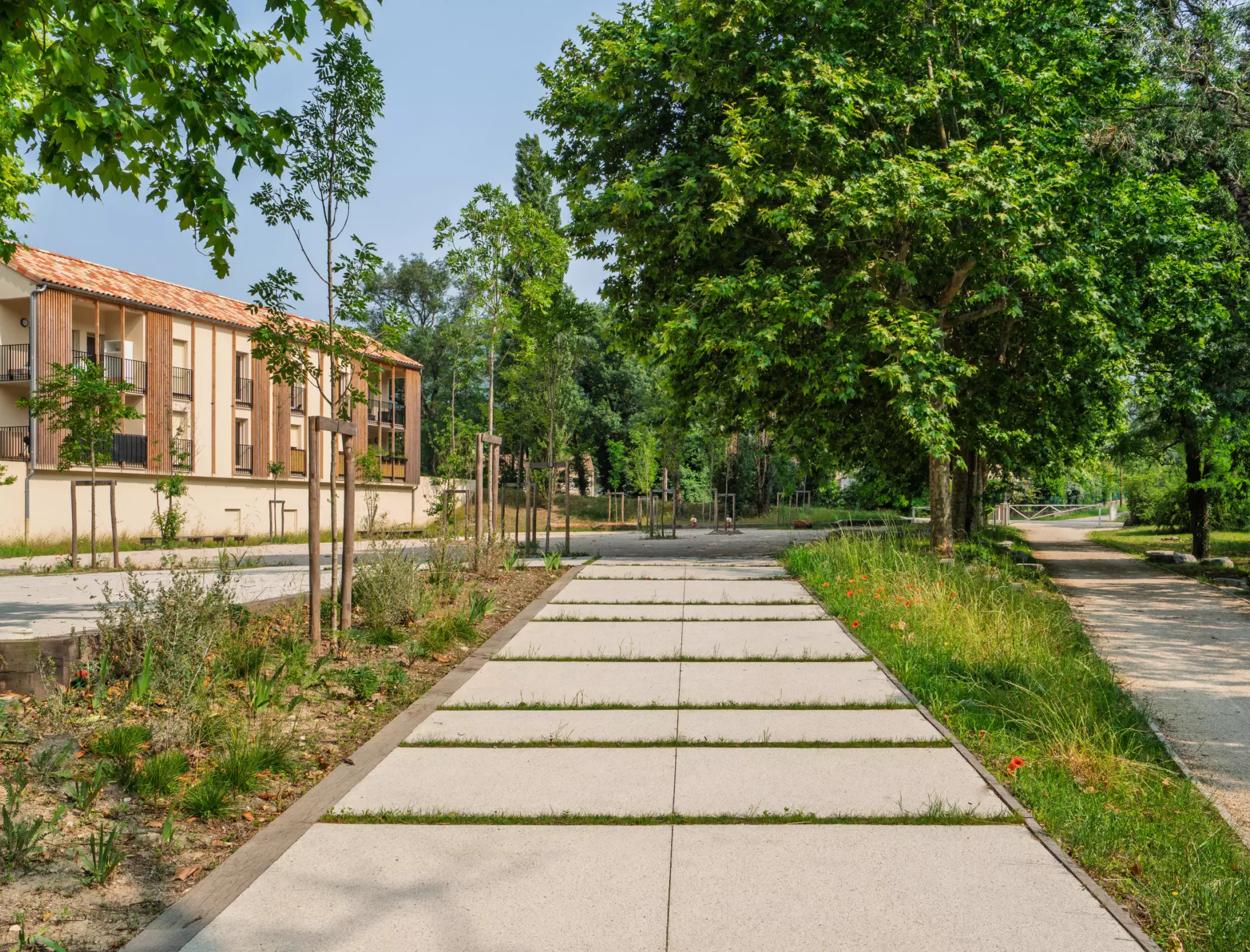 Construction de la résidence et aménagement du quartier de la Gire - Jeux, jardins, halle couverte