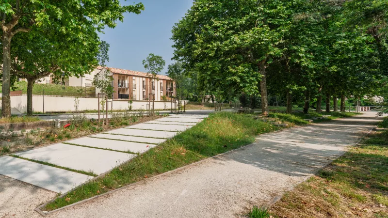Construction de la résidence et aménagement du quartier de la Gire - Jeux, jardins, halle couverte