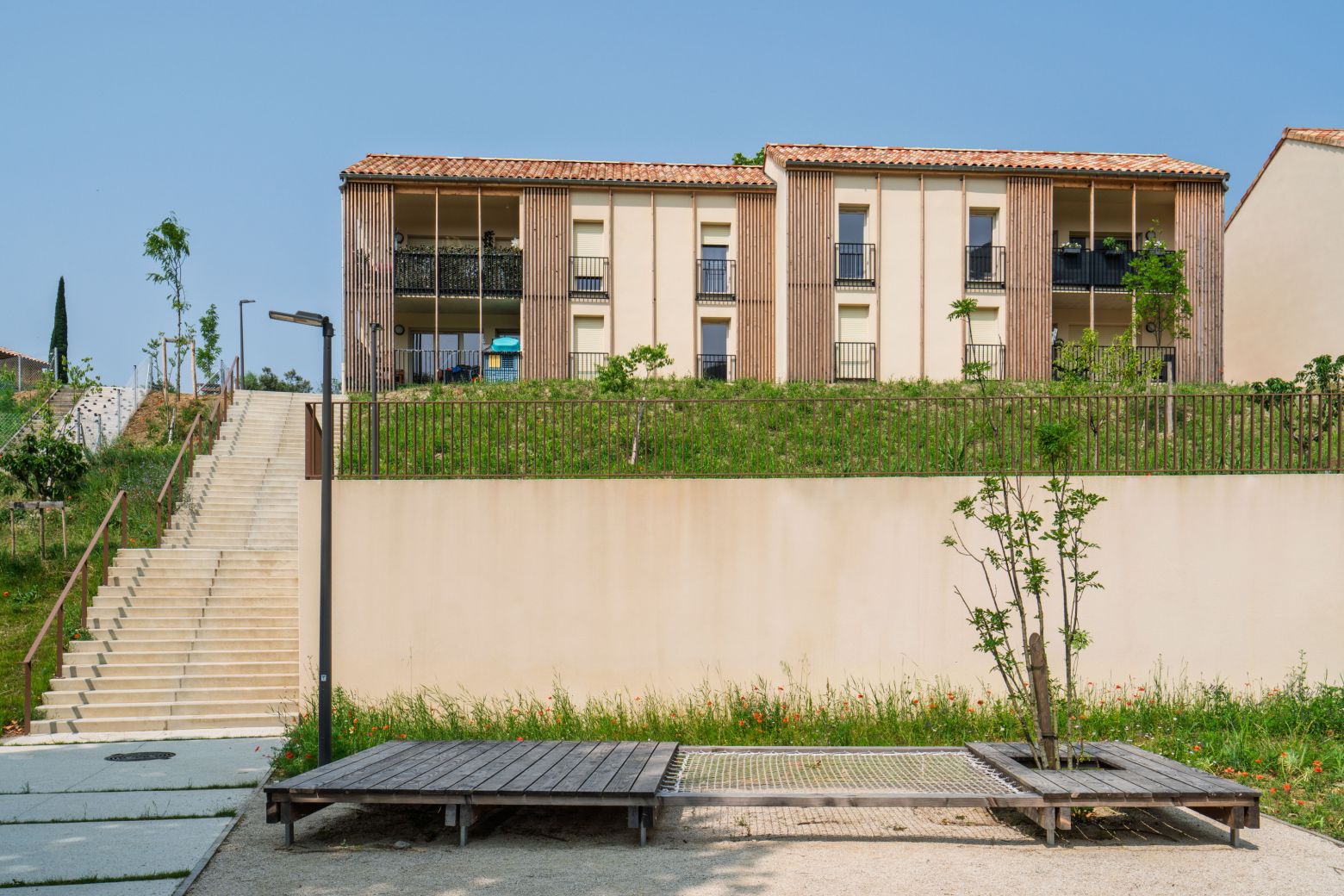 Chaque logement bénéficie d’un espace extérieur privatif soigneusement conçu : jardins, terrasses végétalisées et patios sont intégrés pour offrir intimité, confort et lien avec la nature. Ces espaces participent à une architecture du quotidien, favorable au bien-être, tout en encourageant les usages partagés et la biodiversité.
