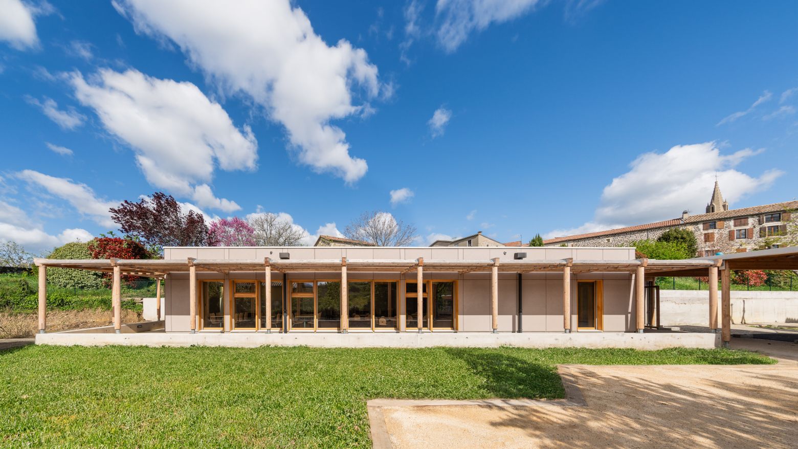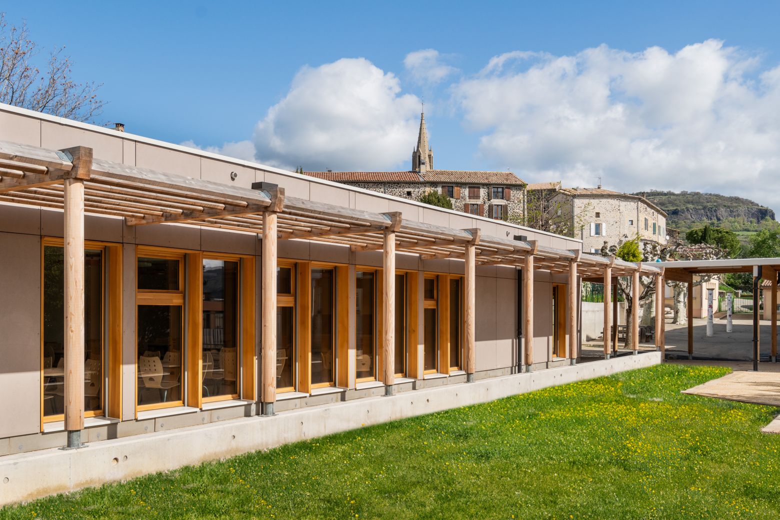 Construction d'une cantine sur le site de l'école publique actuelle de la commune de St Jean Le Centenier afin de permettre aux enfants une prise de repas sur place. La nouvelle cantine comprend une salle de restauration pour 60 élèves, un office, des sanitaires ainsi que les locaux du personnel. Cette nouvelle cantine sera construite selon une démarche environnementale investie (dont utilisation de matériaux de faible impact). Chantier en site occupé.