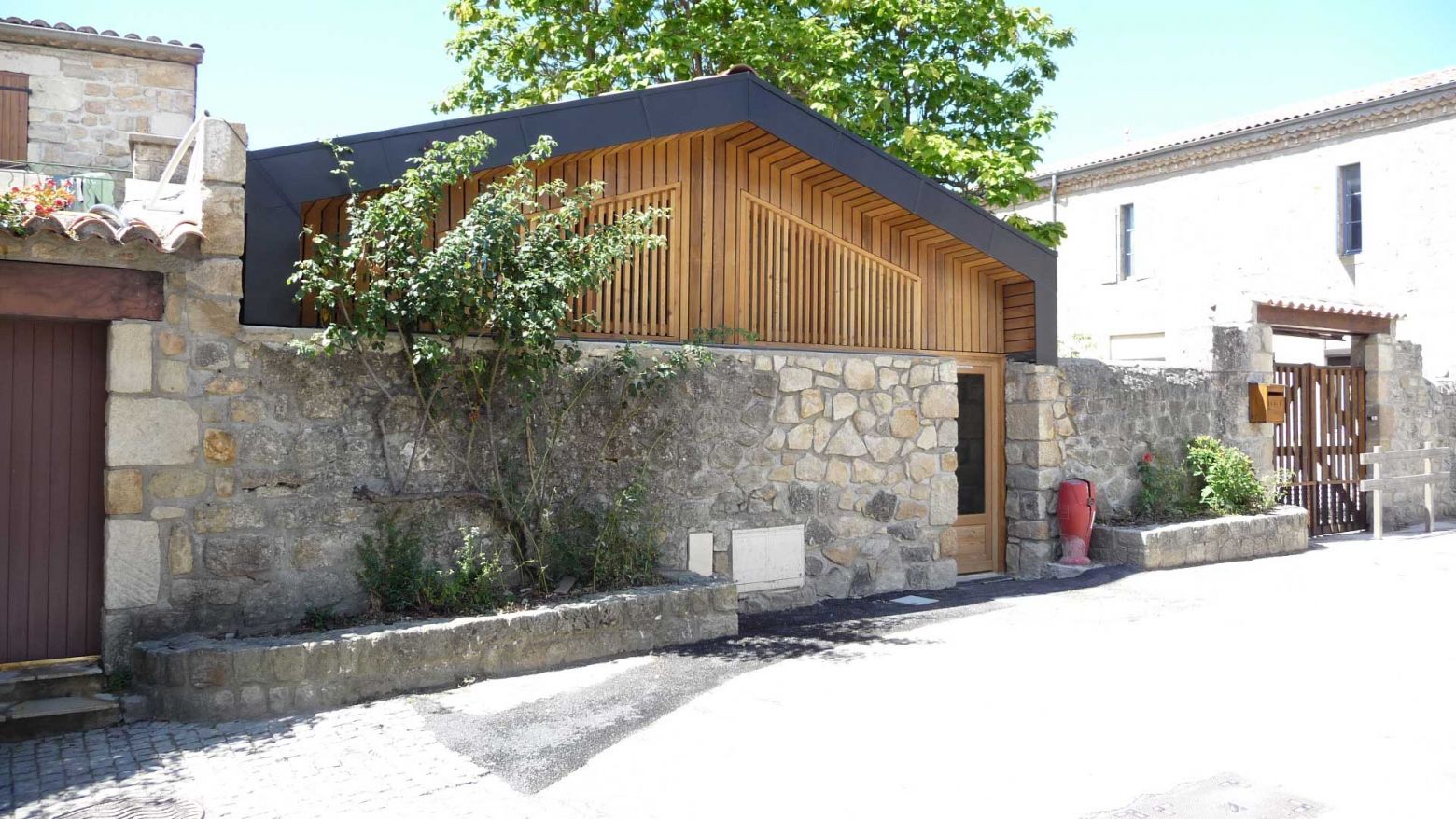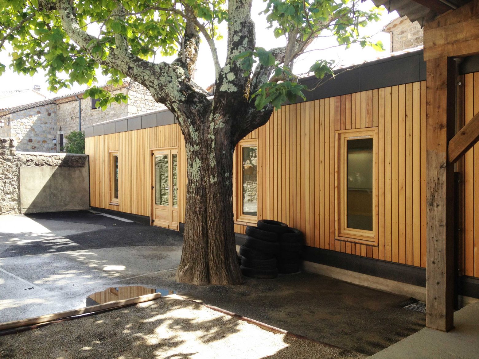 Le nombre d’habitants sur la commune d’Ailhon grandissant, il était impératif de pourvoir l’école communale actuelle de nouveaux locaux pour l’accueil des enfants à la rentrée 2012.Intervention délicate dans un site occupé et de surcroît au sein d’un village inscrit au Patrimoine (labélisé Village de caractère), notre choix s’est porté sur une construction 100% bois dont les volumes viennent parfaitement s’inscrire sur la parcelle actuelle, jusqu’à la conservation du muret de pierres bordant la voirie existante.