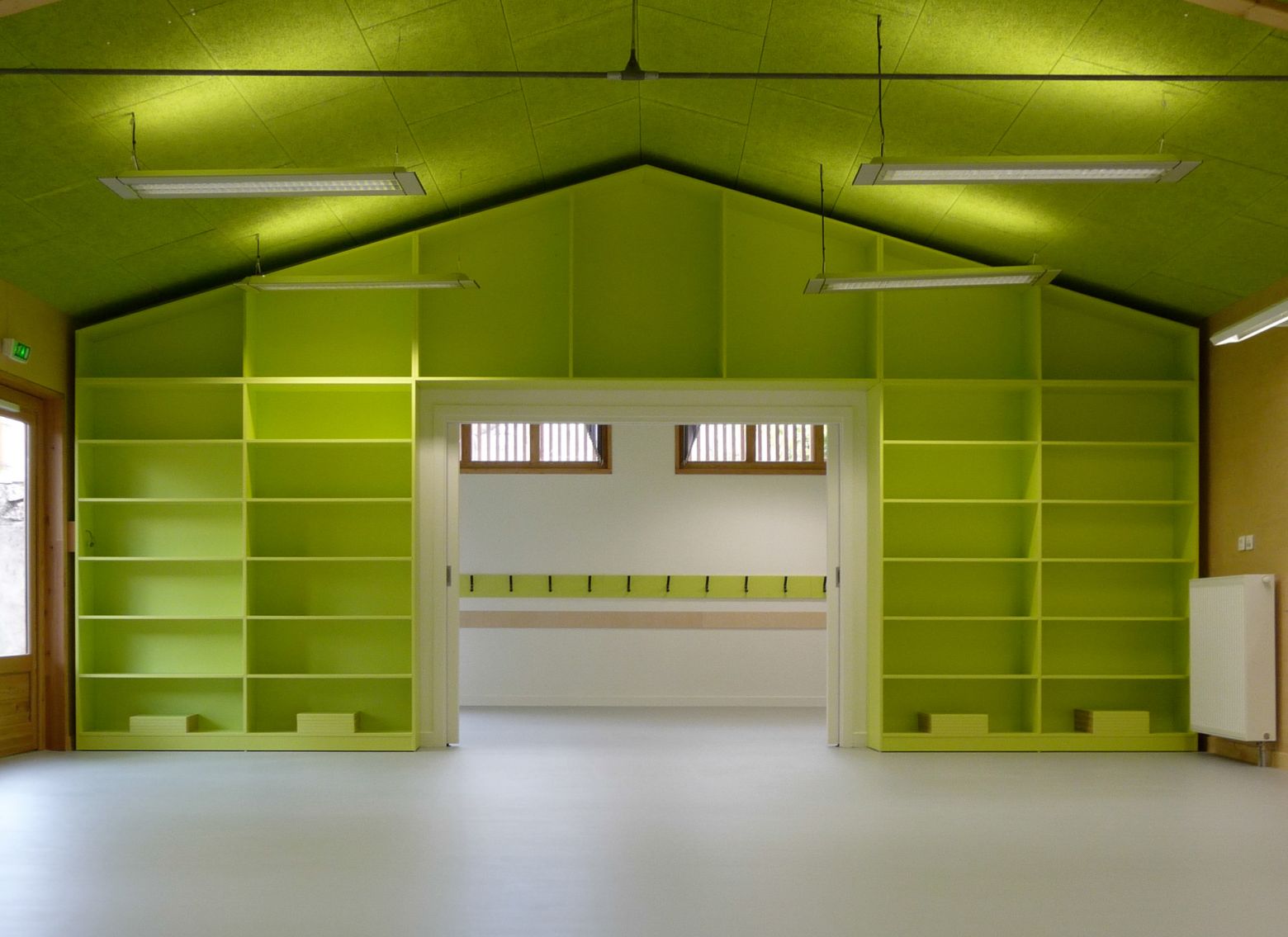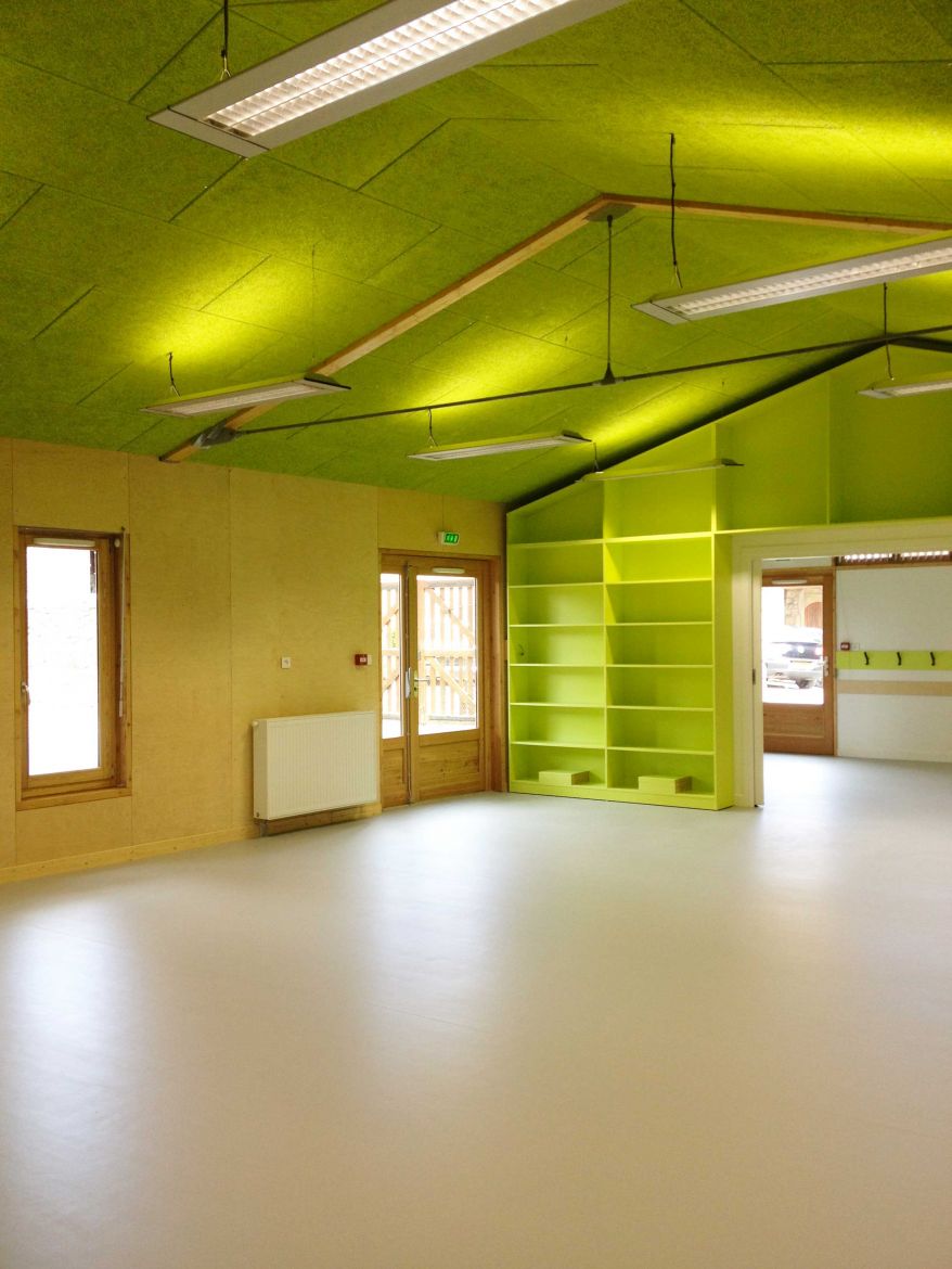 La mise en oeuvre de matériaux non-polluant (isolation écologique, doublage bois, peintures non-emissives...) a été une priorité pour donner aux enfants et enseignants une qualité de l’air optimale et un confort hygrométrique et acoustique répondant aux normes environnementales et de conditions sanitaires des espaces.