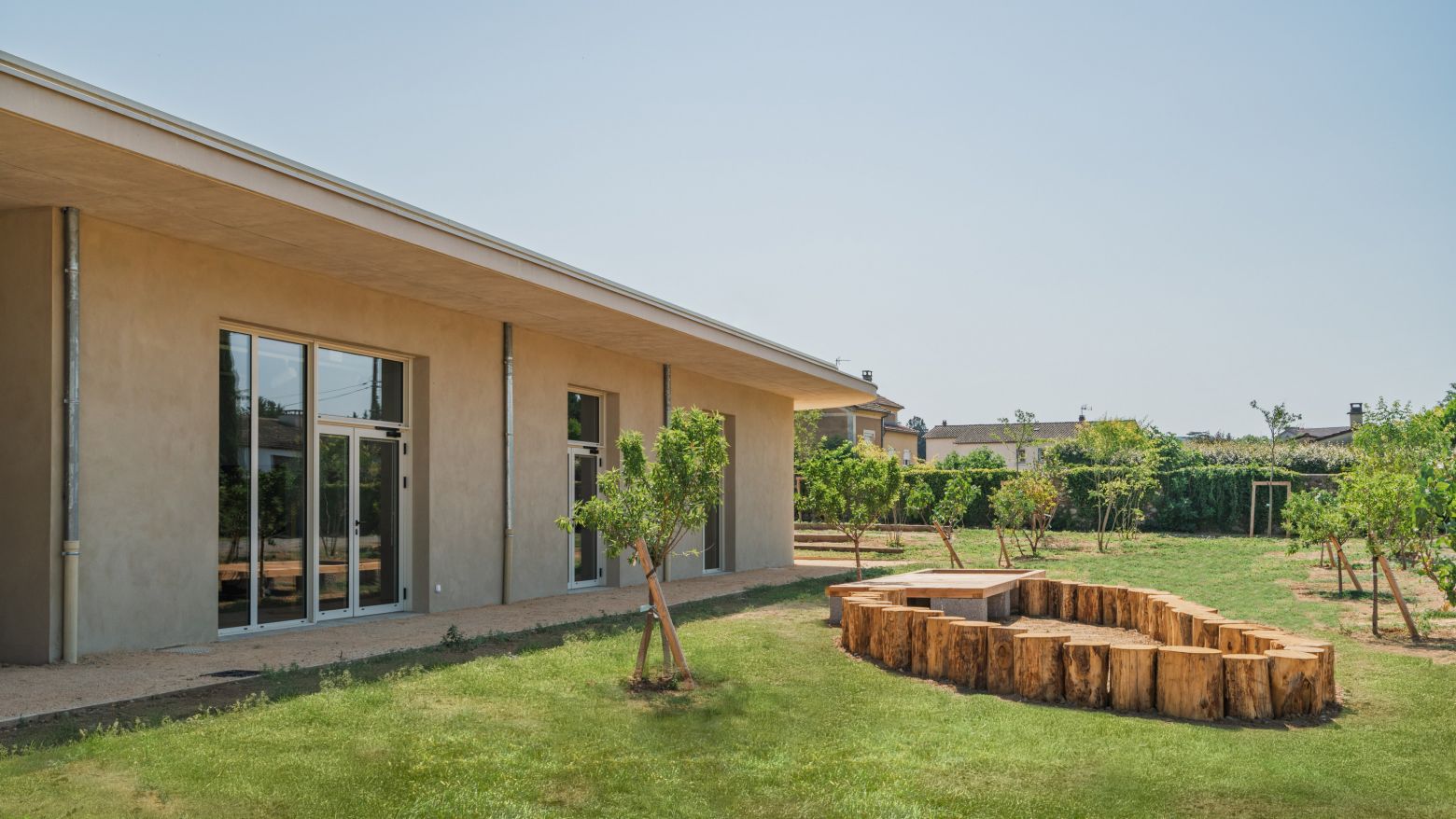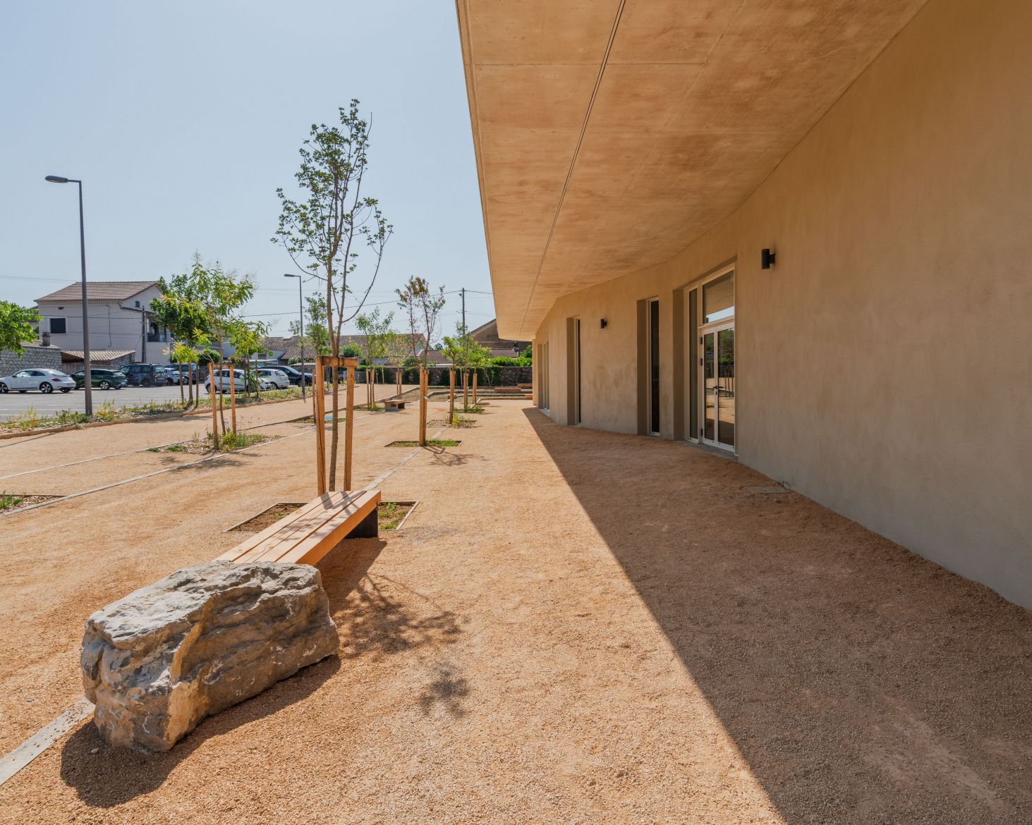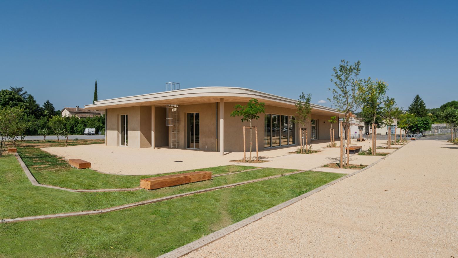 Les aménagements extérieurs ont été pensés comme une extension naturelle du bâtiment. Leur tracé souligne la silhouette courbe du projet et accompagne le visiteur dans une déambulation douce. Un jardin de lecture offre un espace calme et végétalisé, propice à la contemplation. À terme, les arbres apporteront ombre et fraîcheur, renforçant le confort des usagers en période estivale.