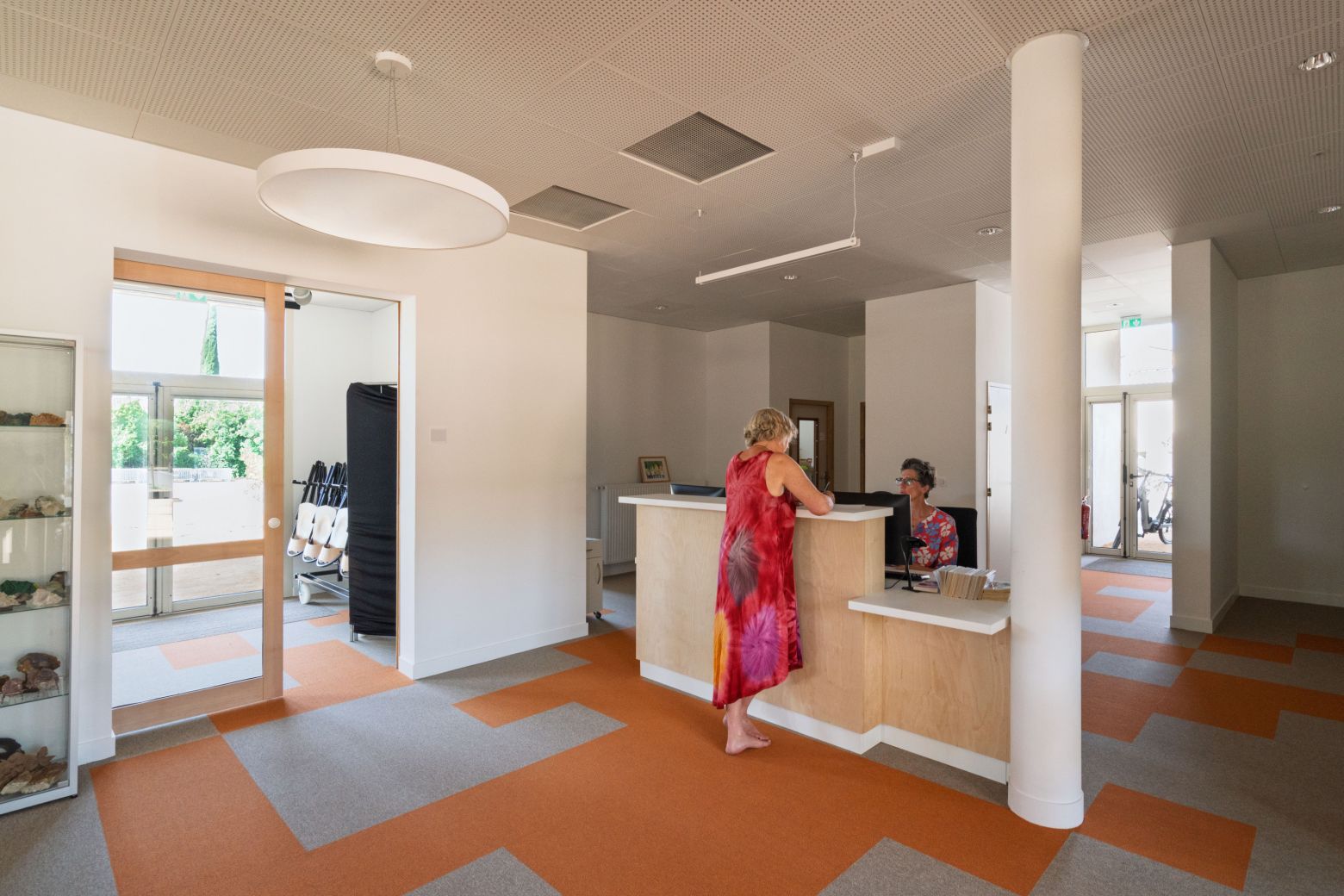 Le projet se distingue par sa palette de teintes douces et naturelles, qui renforcent le caractère accueillant du lieu. La lumière naturelle pénètre généreusement les espaces, soulignant les courbes et les matières, et créant une ambiance propice à la lecture, à la concentration et à la détente.