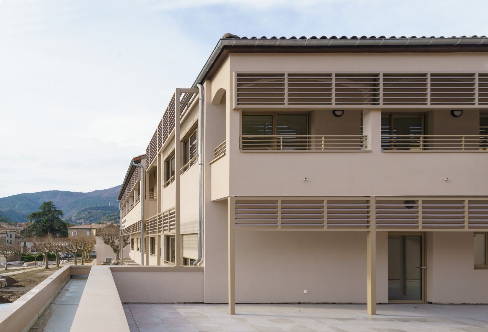 Transformé en équipement structurant et ouvert, ce bâtiment des années 80 devient un pôle de services qualitatif, intégrant une médiathèque, un espace de coworking et le nouveau siège de la Communauté de Communes du Pays des Vans en Cévennes.