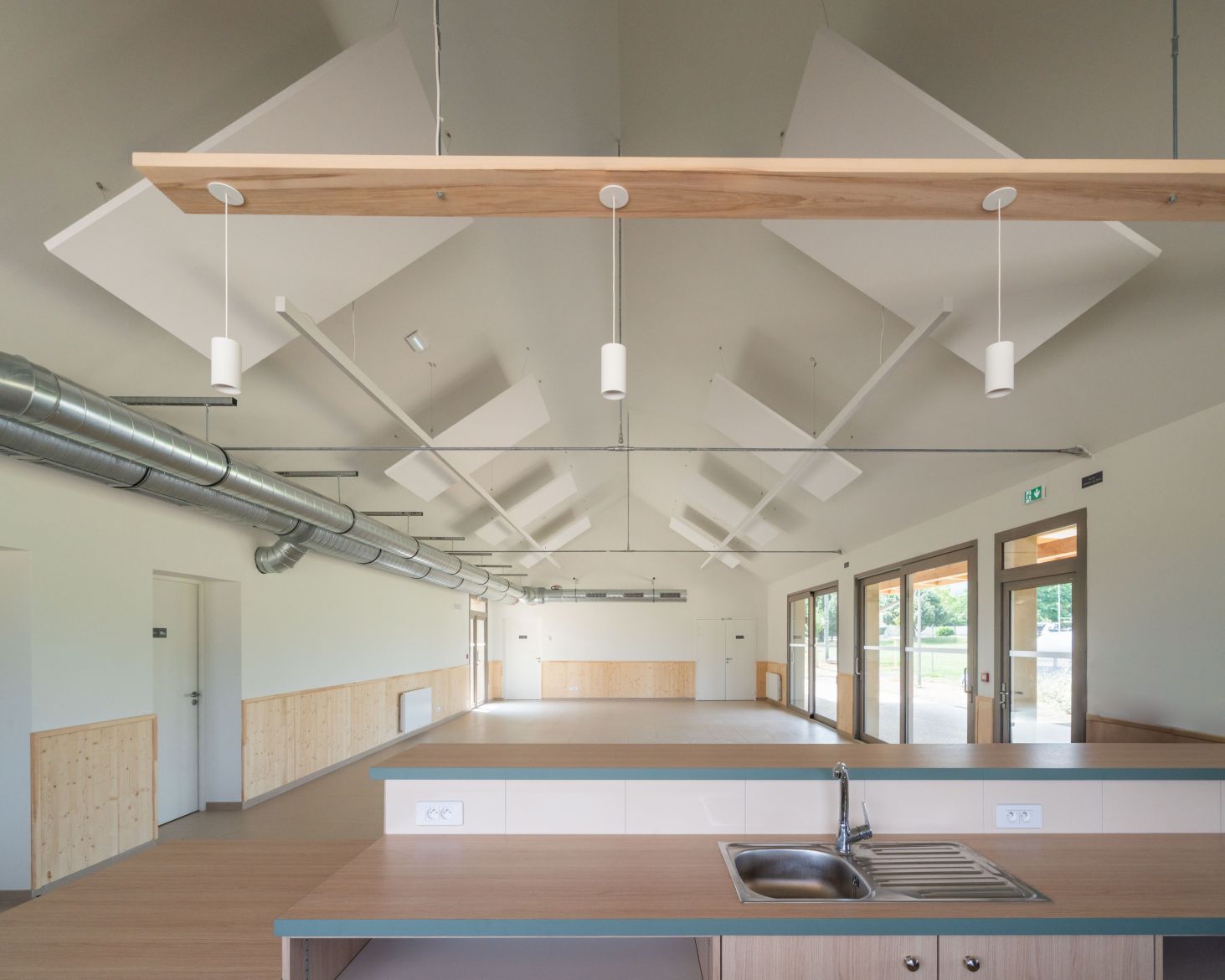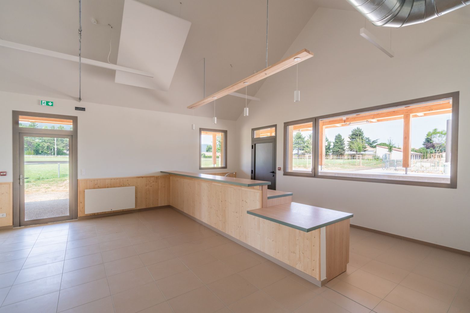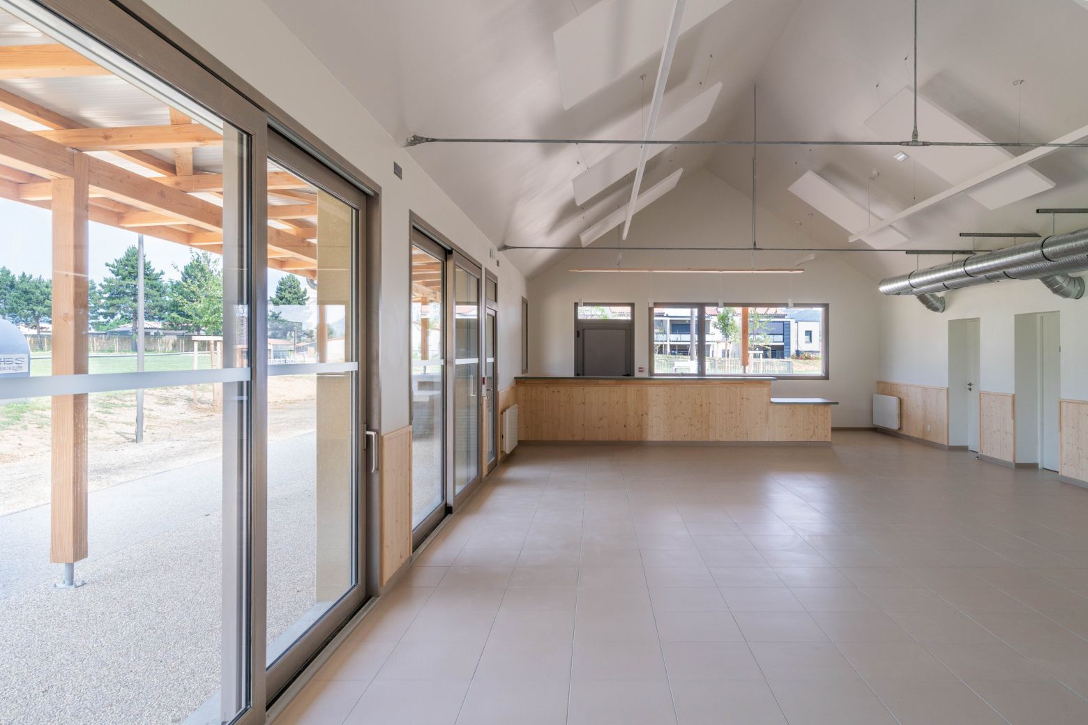 La Maison du Parc se distingue par ses jeux de transparence, ses continuités visuelles et sa modularité d’usage. Chaque détail architectural favorise les échanges, les circulations douces et les usages multiples, qu’ils soient festifs, sportifs ou associatifs.